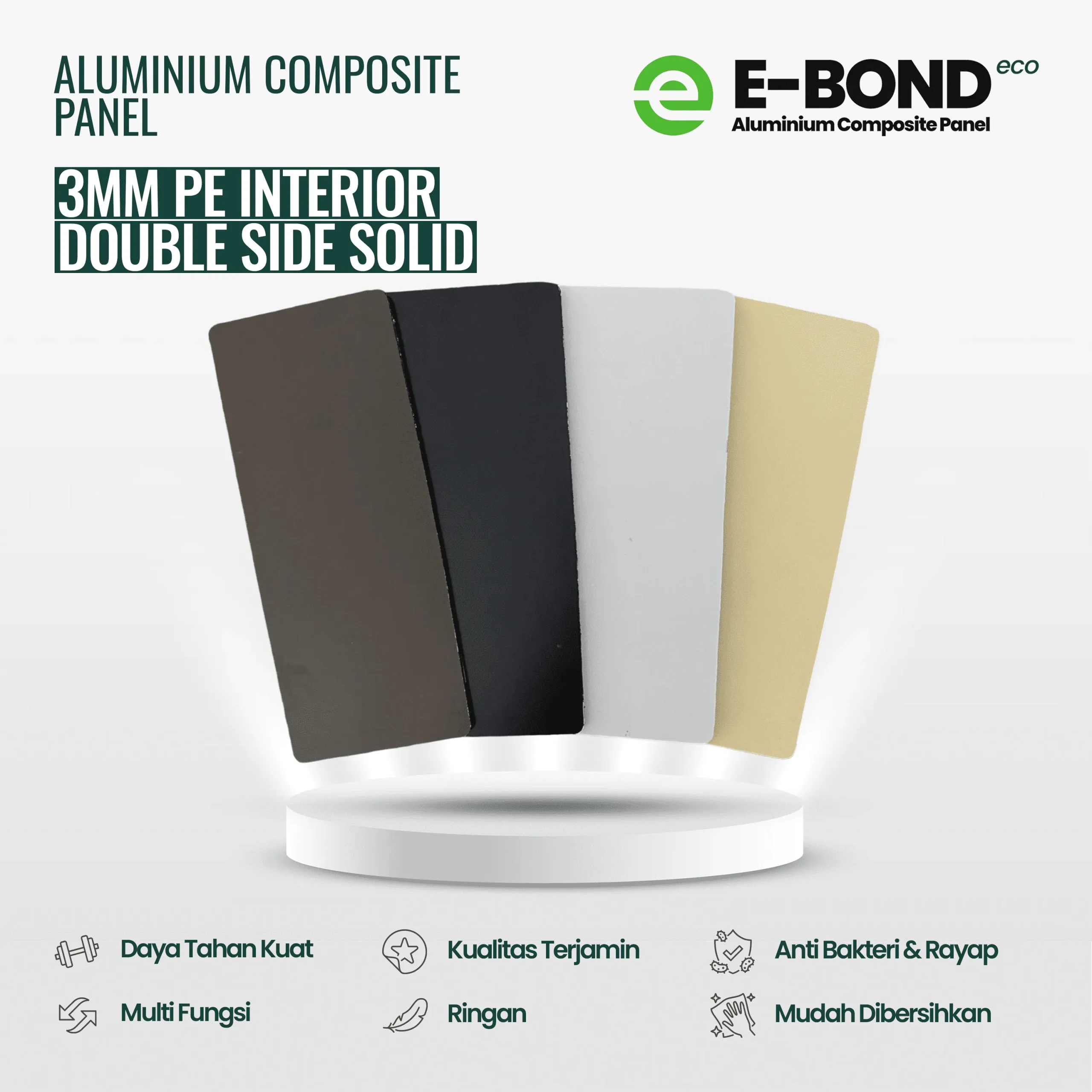 Tertarik untuk menciptakan desain interior bangunan yang keren dan menarik? Bagi Anda yang notabene merupakan arsitek, developer maupun perorangan, wujudkan interior keren Anda dengan ACP Ebond, merk ACP terbaik kualitas terpercaya. ACP Ebond hadir dengan banyak pilihan warna dan corak yang menarik, tentunya sangat cocok bagi Anda yang ingin membuat interior ruangan yang keren dan menarik sesuai kreatifitas. Pada umumnya, pemanfaatan ACP Ebond ini digunakan untuk beberapa hal termasuk diantaranya pada seperti interior gedung perkantoran, hotel, showroom hingga perumahan.